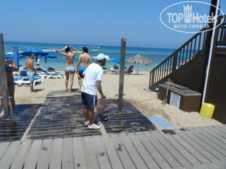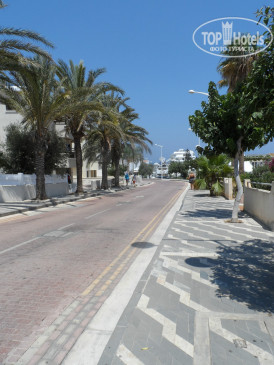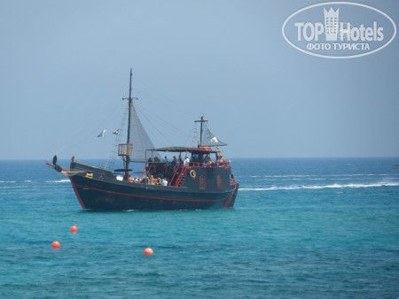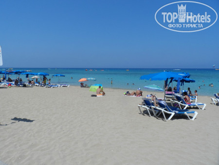 Пляж: ближайший спуск через дорогу у отеля Илиада бич направо-ходили до фиг три бэй, мин 13. Вода супер чистая, везде мелководье, есть островок до туда можно сплавать посмотреть рыбок с маской. Также пляж есть налево от отеля: санрайз перл спа. Лежак 2,5 евро, комплект 2 лежака плюс зонт -7,5 евро.