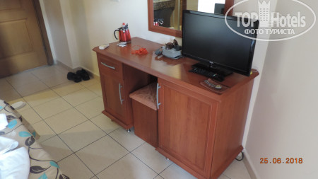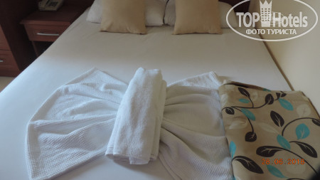 Отдыхала в этом отеле семьей с мамой и двумя подростками в августе. Отель расположен в Сиде, в 16 минутах от собственного песчаного пляжа с лежаками, без туалета и душа с ржавыми зонтами и злым уборщиком пляжа. Нас заселили сначала в номер не нашей категории, потом переселили в Family room, где были 2 комнаты. Еда однообразная, иногда не свежая(касается овощей из брокколи). На дальний пляж возит автобус, он почище, но там запрещено со своими напитками и едой,а бар и еда в нем очень дорого. Надо сказать, что цены на еду в общепите Сиде мягко говоря высокие. Макдак 3 бигмака и большая картошка обошлись в 3 тысячи рублей. Уборка в номерах ведётся ежедневно, размазывают песок по полу, полотенца не меняют, их просто аккуратно складывают. В целом рум сервис хорош. Сейф платный, в номерах не воруют. Еда однообразная, рис, пюре, спагетти, овощи, курица. Из фруктов - арбуз, яблоки, виноград. На завтрак яйца, джем и булки. Поездка на 10 дней на 4х обошлась в 300 тысяч с вылетом из Питера, туроператор Библио глобус. Гид в отеле отсутствует, только втюхивает экскурсии. Трансфер впервые был отвратительным, нас привезли не на тот терминал. Пришлось ловить такси и платить свои деньги.