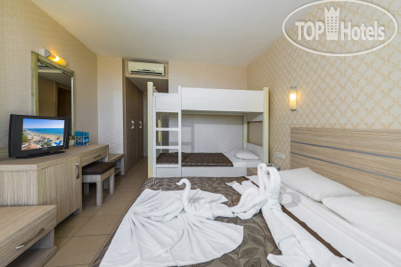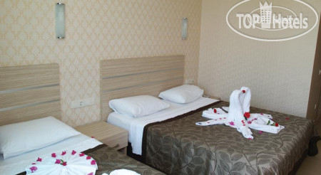 Были в Турции в первый раз. Поэтому без особых претензий. Небольшой отель с хорошим номерным фондом. До пляжа далековато, причём дорога через малоприятные места. Автобус ходил редко и неудобно(возможно сейчас по другому). Пляж хороший, песок. Вода в море ооочень тёплая. Отлично подойдёт для маленьких детей. Сотрудники на пляже работают на совесть. Пока ты в море, и песок сметут с лежака и мелкий мусор подберут. Рядом с отелем есть хорошие магазинчики. Питание стандар без изысков. Огромный плюс за сотрудников. Даже с языковым барьером чувствуешь себя желанным гостем.