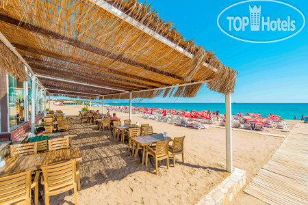 На пляже чисто, следят за порядком, вход песочный пологий, комфортно и себе и ребенку, зонтики новые соломенные, хорошие лежаки, есть свой бар (разливное пиво, б/а напитки, чай, кофе, вода - бесплатно, мороженое платно 2 и 3 евро, и другие напитки , но тоже платно). Пекут лепешки гезлиме (кроме понедельника), а также снэк бар в обеденное время по меню, принимают заказ и выносят в течение 5 мин (паста, рыбка гриль с картофелем и овощами, наггетсы, бургеры, что-то еще не помню уже, но выбор есть).