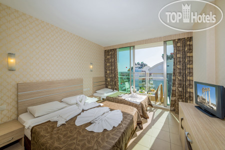 В этот отель нам предложили заселиться на сутки, поскольку в отеле Amor, в который у нас был куплен тур, не было свободных номеров (мы прилетели очень рано). Хозяин у отелей один. Мы согласились и нам предоставили дополнительные плюшки - бесплатный интернет и сейфы в двух отелях, свободное пользование инфраструктурой обоих отелей, номер в отеле Amor на наш выбор + комплемент (вино, фрукты) при засаелении. Мы согласились. Хотя отели и рядышком, нас довезли на авто (как и обратно в Amor). Дали номер на 1 этаже. Отель не новый, территория маленькая, но в целом, для 3-х звезд, вполне. В номере помимо двуспальной кровати (удобная) есть двухэтажная, на случай размещения с детьми. Поскольку у нас была одна ночь, нам было все равно. Телевизор, чайник с принадлежностями, кондиционер. Ванная комната с душевой кабиной. шампуни, гели - все в наличии. Вид из номера был на бассейн. Вечерние представления можно смотреть с балкона. Ресторан небольшой. Мы посетили его в обед. Разнообразие небольшое, но то что мы выбрали - вкусно. Мясо, рыба, овощи, фрукты, сладости. Напитки в баре традиционные. Пробовали пиво, белое вино. Все очень достойного качества. Вечером приятно посидеть в спокойной обстановке или сыграть на бильярде. Народу мало, атмосфера приятная. По вторникам в отеле проходит Турецкая ночь. Для трех звезд вполне приличный отель. Номеров не много, соответственно и людей не так чтоб уж очень много. На пляж возит автобус. Сначала забирает гостей отеля LOWE, а потом едет в Amor. У отелей свои пляжи. Шезлонгов хватает, море отличное! На пляже есть бар, можно остаться на обед (по меню). А с 11 пекут лепешки гезлеме, очень вкусные. Отель рассположен не далеко от центра Сиде, поэтому легко добраться до достопримечательностей и различных магазинов.
