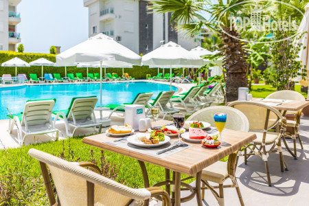 Резюмирую. Спокойный размеренный отдых в отеле и в Сиде (в данном районе, в частности), уважительное отношение представителей отеля и местных жителей, комфортно все прошло. Я очень осталась довольна отелем, чувствуется добродушное и очень старательное отношение персонала, который не сидит на месте, а работает качественно, желание сделать ваш отдых приятным, что порой не всегда бывает в больших и очень дорогих отелях. Конечно, если нужна сумасшедшая анимация, шум , гам , море развлечений и 100/500 блюд - это совсем другие отели. Правда к концу нашего отдыха очень прибавилось народу, но тут уже сезон открылся в полном объеме и от этого никуда не деться. Анимации в наше время не было, только как я сказала , легкая музыка, которая играла до 23.00 (нам не мешала). Но в отеле курят иностранцы со страшной силой, тут да, есть свой минус.