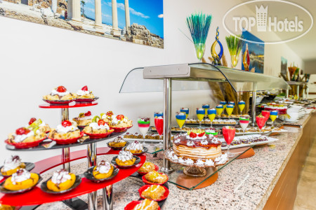 Питание в отеле. Есть с чем сравнивать за многие годы путешествий. Питание отличное! Нет 100/500 блюд, но абсолютно все вкусное, есть что выбрать ребенку. Правда на завтрак нет ничего мясного , только ветчинные нарезки, колбаски (но они вкусные). Разнообразие салат-бара, фруктов, кондитерки, гарниры, овощи тушеные. Мясо всегда на обед и ужин, рыбка на гриле. Бульон и каша молочная по утрам, суп вечером. Бар на бассейне основной работает с 10-23, очень приятное разливное вино, и пиво, кстати, тоже хорошее, еще брала мохито, но есть и крепкие напитки (я не брала). В период с 15-16 выносят на бассейне пирожные.