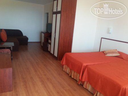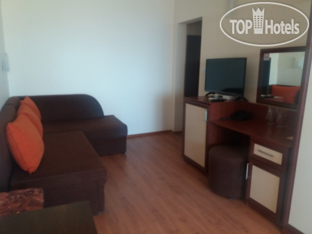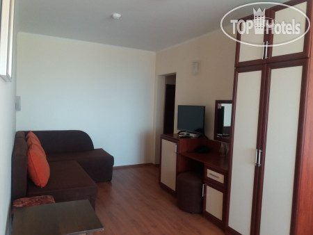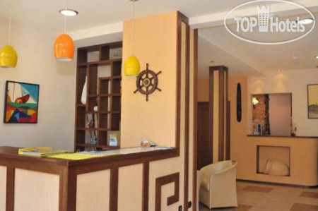 Отель четырехэтажный, небольшой, этажей с комнатами три, на первом этаже ресепшн и ресторан. Номера чистые, светлые, как я поняла, все номера в отеле с видом на море. А если учитывать перепад высот, то вид открывается просто шикарный. Очень приятно вечером сидеть на балконе и любоваться морским закатом.