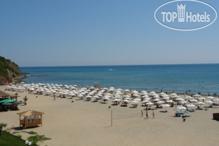 Пляж чистый, ухоженный. Зонтики и лежаки платные. Мы пользовались только зонтиком - 8 лев. Вода чистая, берег песчаный.