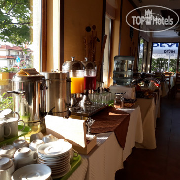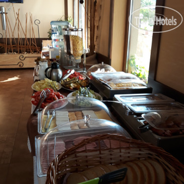 Завтрак в отеле включен в проживание. Его подают по системе шведский стол. Блюд много: яйца варёные, омлет, каши, хлопья с молоком, сосиски и колбаса жареные и варёные, гренки, пирожные, кексы, халва, фрукты и ягоды, сыры, колбаса и мясо на бутерброды. Из напитков кофе, чай, холодное и горячее молоко и холодные морсы. Всё вкусное и свежее. Еда выносится по мере того, как заканчивается, поэтому даже если придёте в конце завтрака, будете есть горячее и свежее.