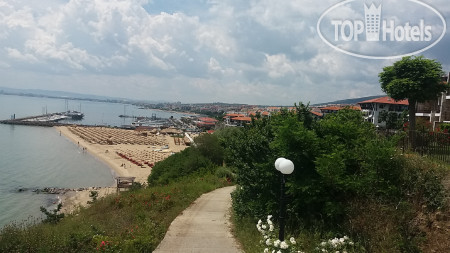 Мы приехали в отель из Бургаса в час ночи. Нас приветливо встретила хозяйка отеля Марианна. Мы были голодные и она нам предложила поужинать после размещения в номере. Вид из окна номера замечательный (на море).