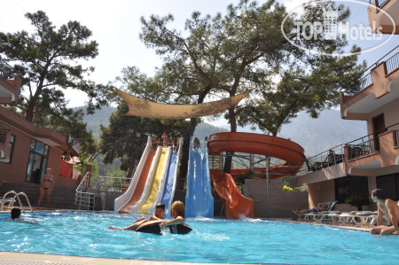 2. Бассейн с горками. Горки хоть и небольшие, но нам очень понравились, приходили каждый день. Лежаки есть всегда и в тени и на солнце, бассейн тихий. Горки работают по времени 2 раза в день. Из недостатков этой зоны –скользкая плитка на пути к горкам, там нужно специальное покрытие.