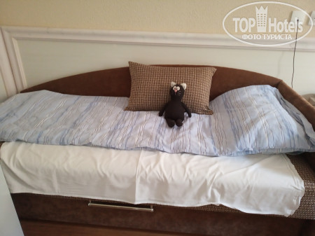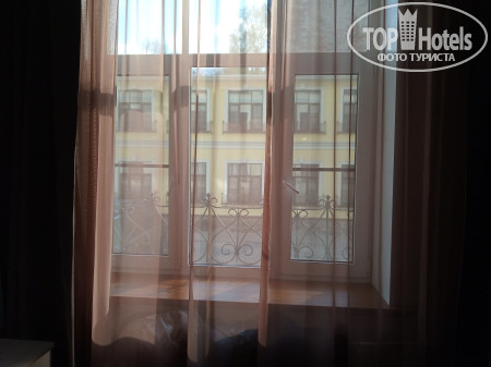 НОМЕР: трехместный номер д108 с полноценной кроватью для ребенка, удобная красивая мебель, французское окно, плотные шторы (для белых ночей). Номер выходит окнами на внутренний дворик, поэтому было очень тихо. Работающие батареи в мае, в каждом номере хорошо оборудованный санузел с бойлером и душевой кабиной, есть фен и мыльные принадлежности (гель-душ, шампунь, мыло). Полотенца белоснежные, обстановка уютная, свежий ремонт. В номере ЖКИ телевизор, дюйма 32 точно, холодильник, чайник, чашки для чая/кофе, столик, 2 стула, тумбочки и шкаф с вешалками. Все аккуратно, чисто, уютно. Wi-Fi в номере. Единственный минус – отсутствие шумоизоляции, очень слышно, как соседи открывают/закрывают двери.