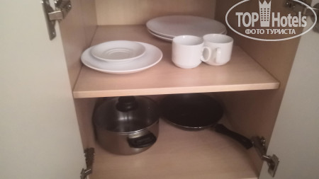 Посуда в номере номинальная, ну типо есть. Кухня для вида.