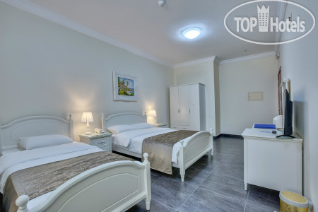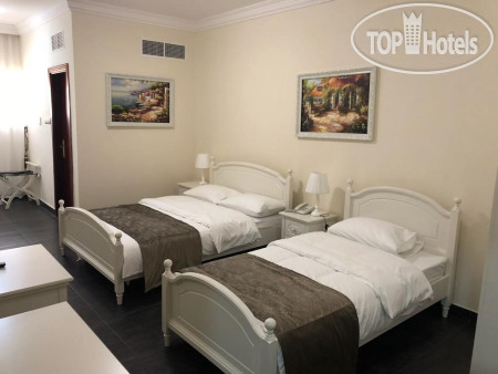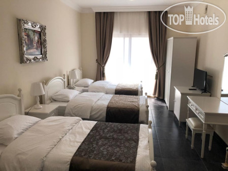 Прилетели 14 апреля Аэрофлотом от Библио-Глобус без задержек. Самолёт боинг большой, но везли нас в отель на минивэне всего две семьи, нас первыми высадили. От аэропорта до отеля недалеко, но по пробкам ехали 45 минут, назад за 20 довезли. В отеле были в районе 4 вечера. Сразу разместили. При бронировании турагенг показывала фото номера Фэмили, на сайтах он был однокомнатный с 3 кроватями. Мы летели вдвоем с мужем. Какого было удивление, когда на ресепшн сказали, что комнат будет 2 и туалетных комнат тоже. Номера выходят на мечеть. Я спала так, что ни разу ее не слышала ночью))) Видимо за день наплаваешься, находишься, что вырубало сразу. В номерах чистенько, постельное белое, матрасы твердые шикарные. Полотенчики старые, но меняется постоянно и на на каждого лежало 5 штук. Белье нам тоже поменяли на 4 день. В обеих комнатах по телевизору, сейфу, утюгу, чайнику. Чашек не было, были стаканы. Заварки тоже не было. Купили. Воду нам приносили каждый день по 2 бутылочки на каждого. Вайфай отличный, бесплатный.Телевизор показывал 2 русских канала каких то, мы привозили с собой приставку андроид тв и смотрели. Адаптер у нас тоже свой был. Попросили тройник, но у него был плохой контакт. На ресепшн пару раз сказали, говорили больше свободных нет. Попросили у Томаса, он стоит встречает гостей и проводит в номера. Вот он сразу нашел нам нормальный. Вода горячая была, проблем с этим не было. Из мыльно-рыльного гель- шампунь в дозаторе у раковины и в душе. Полотенца на пляж у входа на первом этаже, можно брать и утром, и вечером. На пляж, куда возят, не ездили, ходили пешком на муниципальный. Он в 10 минутах ходьбы. Песок плотный,не проваливается. Заход пологий, отличный. У берега полоса в метр при заходе с ракушками, можно поранить ноги. Вода теплая в апреле. Много местных гастарбайтеров ( индусов и пакестанцев) , к 10, пол 11 обычно они уходят и приходят снова к вечеру. В выходные их много с семьями. Вдоль моря обустроенный променад. По питанию. Брали все включено софт. Выбор небольшой, но всё очень вкусно и для русского желудка. Я бы такое питание назвала выбор без выбора. Но мне даже так больше понравилось, чем кучи непонятных блюд. Когда бы я стала есть еще каши по утрам)). В обед и ужин один вид супчика ( с фрикадельками, овощной, борщ, нутовый типа горохового), два вида мяса ( говядина и курица, либо курица и котлеты), за неделю 1 раз была рыба, два вида гарнира ( тушеные овощи- сборные, баклажаны, фасоль стрючковая и лапшичка, спагетти, рис, плов, картофель пюре или картофель по-деревенски), три вида салата, маринованные огурцы и помидоры, соусы томатный и еще какие то, хреновина, всегда арбус и дыня, один-два вида пироженок. На все включено в обед и ужин сок на выбор: апельсин, ананас, яблоко. На завтрак каша молочная ( манка, рис,геркулес), сосиски, яйца, яишница, фасоль, блины разок были, какие то треугольнички с мясом, овощи, сыр, вкусные булочки и кексы, апельсины. Чай,кофе из напитков на завтрак. На Пасху сделали куличи! По питанию 5! Что не понравилось - очередь в ресторан. 80 номеров в отеле, в ресторане посадочных мест столов 12, один в резерве всегда для пилотов и стюардесс. Поэтому у дверей собирается очередь и запускают, когда стол освободится. Как то унизительно стоять ждать. Стали приходить позже, иногда за полчаса до закрытия. Очередей уже нет, а еду все докладывают, все в наличии было. По