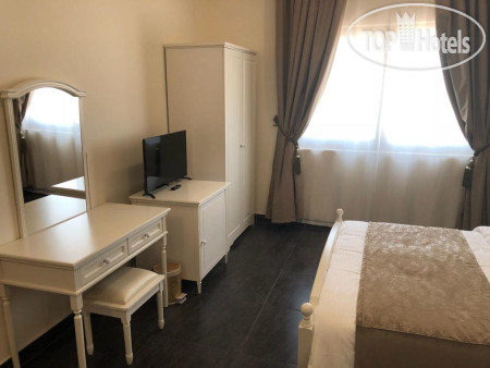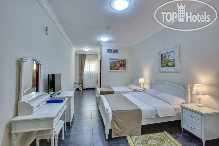 В номере есть всё, включая бесплатный сейф и вай-фай. Номера не уставшие, комфортные. Наш семейный номер состоял из 2х смежных отдельных номеров, было очень удобно! Уборка ежедневно, питьевой водой тоже обеспечивали регулярно. Телевизоры работали, канал ТНТ также транслировался. Окна смотрели не на мечеть, молитвы особо не мешали. Кондиционеры встроенные, почти не включали - не было надобности, ночью прохладно. Горячая вода была всегда, сантехника исправная. А вот подушки были высокие и жесткие для меня, приходилось выкручиваться. Розеток мало и они трехштырьковые, но заранее прочитала об этом, взяла переходник и не прогадала.