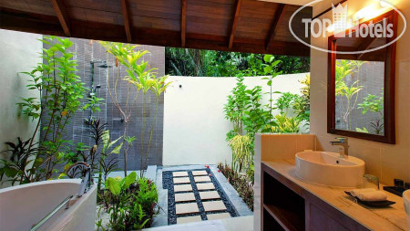 Просторно, уютно. Атмосферная зона с душем под открытом небом, джакузи и всем остальным что необходимо для личной гигиены.