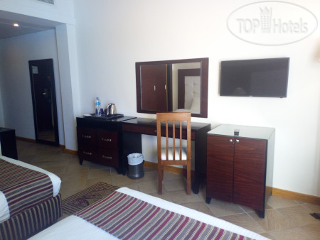 Бюджетный отель. Недорогая пятерка с красивым рифом и собственным аквапарком. Плюс многие сотрудники говорят на русском языке. Отель расположен в районе Макади Бей и здесь в основном дорогие отели. Но Tia Heights Makadi Bay 5 является не только самым дешевым вариантом в этом районе но и в целом это один из самых дешевых отелей в Хургаде. И цена отеля такова из за стареньких номеров. Но по сути хоть номер и старенький но чистый. И мы не нашли никаких критичных моментов из за которых я могла бы назвать номер плохим. Сам номер просторный с двумя большими полуторными кроватями. Есть вместительный шкаф. Постельное белье пусть и не новое но в целом приятное и главное без пятен. Есть чайно-кофейный набор. Сейф довольно вместительный. Воду пополняют ежедневно. Единственный вроде и минус это небольшой телевизор) Балкон достаточно просторный. Ванная комната небольшая. Все старенькое но опять же чисто. Полотенца белые, чистые и приятно пахнут. Сам отель большой. Есть огромный бассейн. На территории есть чем заняться. Анимация и прочее. Есть мини гольф. Также этот отель выбирают туристы которые планируют много ездить по экскурсиям. Мы брали поездку Каир- Александрия. Это двух дневная экскурсия но она того стоит. Окунулись в историю) Я её рекомендую тем кто еще там не был а пирамиды и Луксор уже видел. Экскурсии мы купили в агентстве {удалено модератором: несанкционированная реклама} Выбор экскурсий у них очень большой и гибкие цены. Еще один из плюсов отеля это его большой аквапарк ну и самое главное ради чего стоит выбрать этот отель это его пляж. Он просто шикарный и рифы прямо у берега. Подводный мир тут шикарный. В Хургаде вы такое не увидите не где. Отель мы остались очень довольны. Даже в плане питания нас все вполне устроило. Если бы отель еще обновил номера то было бы куда лучше. Но повторяюсь там тоже ничего кричного нет.