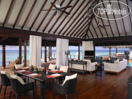 Хороший отель высокого уровня. Подойдет как для отдыха парами так и семьям с детьми. Здесь есть небольшое количество активностей и детский клуб но все таки отель для размеренного чисто Мальдивского отдыха. В этом отеле есть ряд своих преимуществ перед другими ему подобными. Во первых в этом отеле есть подводный ресторан. Он дорогой и качество еды в целом не стоит таких больших денег но атмосфера и вид полностью оправдывают цену и вы останетесь в восторге. Посетить его стоит днем. Вечером нет таких красок как днем. Так же в отеле есть собственная обсерватория. Посещение тоже платно но там вы не только полюбуетесь звездами но еще вам расскажут много интересного. Далеко не каждый отель на Мальдивах может похвастается таким хорошим детским клубом. Для детей много мероприятий и ребенок вряд ли захочет оттуда уходить. Воспитатели англо говорящие но детям все равно все понятно и интересно. Так же для детей есть специальные платные экскурсии. Могут повезти на соседний остров чтоб дети увидели как живут и учатся мальдивские детки. Так же проводят экскурсию в подводный ресторан чтоб детки могли увидеть эту красоту. Но вот услуга няни в отеле не предоставляется и вечером ребенка оставить не с кем. Для взрослых есть тоже небольшой набор развлечений. Например можно поучится играть в тенис с профессиональным тренером или заняться йогой. Есть даже боксерский ринг). Можно посетить арт студию. Также есть хороший спа центр. В ресторане на воде на крыше вам могут организовать романтический ужин. Или можно поехать на рыбалку. У отеля отличный риф и хороший пляж. Домашний риф с очень богатым подводным миром. Я думаю это один из лучших домашних рифов на Мальдивах. Пляж тоже хорош с белоснежным очень мелким песочком и хорошим заходом в воду. В дайв центре работают высокопрофессиональные инструкторы. Персонал работает на отлично. К каждой вилле закреплен батлер. Все очень профессионально все просто молодцы. Встретили музыкой и напитками дали кокос а проводив собрали в дорогу перекус. Если возникают какие либо вопросы персонал всегда идет навстречу гостям. Всем им огромное спасибо. {удалено модератором: несанкционированная реклама} Очень классно что у каждой виллы есть велосипеды и можно покататься по острову. Причем есть даже велосипеды для детей. Выбирая номер учитывайте что лучше если вы без детей то остановится стоит на водной вилле там сразу у вас под домиком будет аквариум, а вот береговую виллу лучше выбирать если вы отдыхаете с ребенком. Виллы не новые но все в хорошем состоянии. Просторно, все удобно. Ежедневно ставят воду. Отличная уборка. В целом по номеру нареканий нет. Питание очень хорошее. Хорошие разнообразные завтраки. Есть разные виды меню. И фитнес диеты, и мясоеды и для веганов и т.д. В общем на любой вкус. Рестораны в отеле дорогие. Впрочем в отеле вообще цены не дешевые но в целом все оправданно!