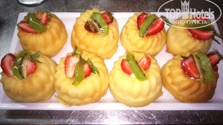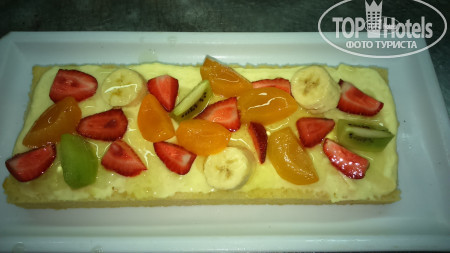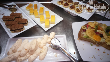 Меню достаточно разнообразное. Можно из предложенного ассортимента скомпоновать себе блюдо. Всегда было по нескольку сортов мяса и рыбы, приготовленных разными способами. Зелень, овощи, как свежие, так и приготовленные на гриле, оливки, маслины, фрукты, десерты, мороженое. Хочется отметить так же, порционно, по ресторанному, раскладку некоторых блюд.