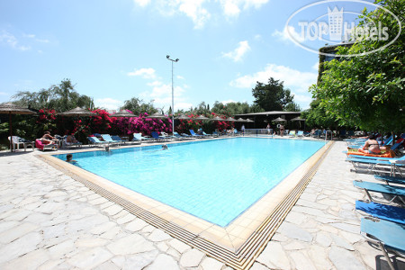 Здравствуйте, отдыхали в Веронике с 12.05 по 19.05, путёвку купили за 38 на 2х с вылетом из Нижнего Новгорода, завтрак. Полет ак Россия с напитками, не кормили. Трансфер от компании библио глобус, отвратительная хабалка гид, смуглая женщина лет 50, создала конфликт с 4 мя тихими трезвыми туристами, пробежав через весь салон без предупреждения выхватила из рук женщины литровую бутылку виски, сказала что если чем то недовольны едте на такси, заселение все быстро. Вай фай хороший во всех номерах. Номер нам понравился, на 3м этаже, сейф и холодильник по 2,5 евро мы не брали, вид на бассейн, кондиционер не включали, спали при открытых окнах, ночью небольшой шум от бассейна, и от тел плюхающихся соотечественников не сильно напрягал, Погода хорошая, день 25, ночь 18, вода немного прохладная, привыкаешь за минуту и дальше все норм. Несколько раз видел людей скандалящих из за номеров, но нас все устраивало. Сотрудники отеля вежливые, улыбчивые, тактичные. Уборка хорошая. До моря идти минут 10 неторопливым шагом, на ближайшей береговой линии около 5 пляжей, все на наш вкус хорошие, на некоторых пляжах есть душ, туалет и кабинки. На берегу расположены отели 5*, с красивыми неогороженными территориями которыми можно любоваться гуляя вдоль моря. До ближайшего большого супермаркета идти минут 20 вдоль моря, цены там пиво - 0.8, сыр - 6, хлеб - 1. Открыли для себя отличное вино медиум рэд - 1.55 за литр, в коробке, выпили его коробок 20. Завтраки в отеле обычные, яйца, бекон, сосиски, греческий салат, апельсины, чай кофе, йюпи, сладости. Брали автомобиль на 3 дня, свифт 100 евро, агентство 200 м от отеля, Николай все покажет и расскажет куда интереснее поехать. Особенно интересно посещение монастыря Кикос, перед выехдом проверьте запаску, ключ и домкрат. Бензин стоит примерно 1.3 за литр.