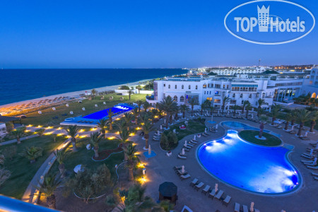 Были первый раз в Тунисе Прилетели из Казани а/к Россия через Библио глобус. Летели 5 часов.В отеле были в 21.30,дали прохлодительные напитки,поужинали,и пошли в номер 182 боковой выход на море. Питание хорошее, креветки, мидии,осьминоги,не всегда, но были.В обед мороженое давали в ресторане на пляжу(там проходил обед);также всегда были дыни,виноград, яблоки, груши,сливы,персики,за 4 дня до отъезда пропали.Анимация неочень.Если выйти из отеля и налево минут 10 магазин Али баба( сувениры, косметика, одежда),ещё подальше тоже магазин, там дешевле.Море поначалу было в водорослях,меня укусила медуза, но в этот же день всё прошло. Через дней 5 течение поменялось и море стало прозрачное, чистое. Температура 32°днём, ночью 22°.За 2 дня до вылета ветер стал,волны, но море тёплое.На территории 2 бассейна, 1 с морской водой.В пятницу приезжали местные на выходные, народу было больше, но это не напрягало.Очередей не было,отель полупустой.Из алкоголя пиво не разбавленое,виски,текила.Вино местное невкусное.Мне всё понравилось, рекомендую!!!!! Вай фай часто вылетал,хуже всего в номере, на пляжу так себе, около бассейна и в лоби хорошо работал. Ходили в туниский а-ля карт,давали дорадо ,был ещё азиатский на выбор.